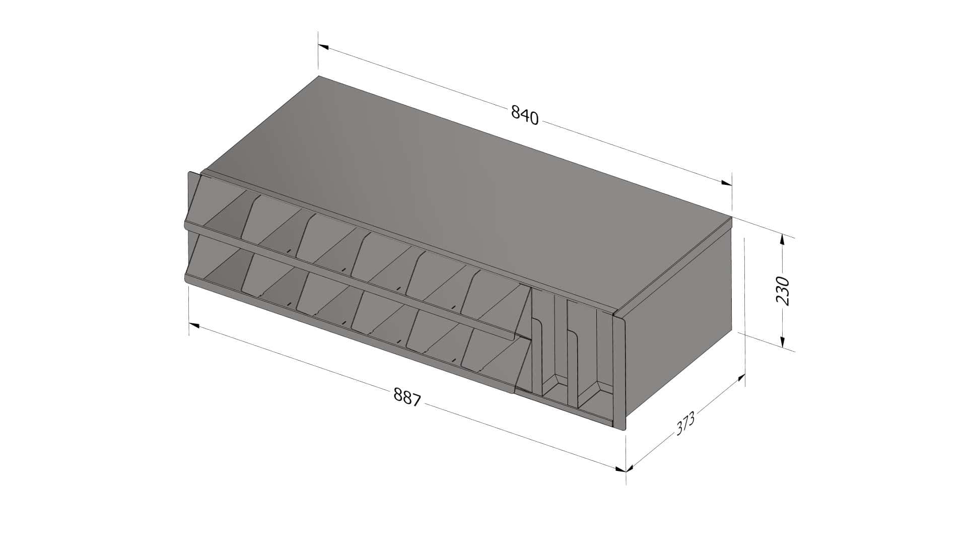 Fourniture et fabrication d’un rangement sous armoire réfrigérée pour comptoir.