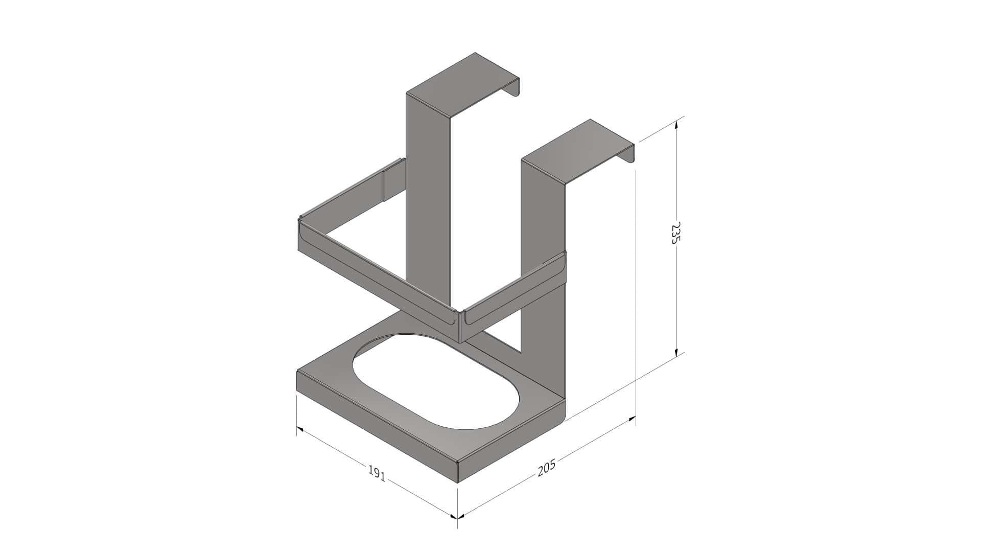 Fourniture et fabrication d’un support pince tout inox, pour intérieur du frigo FRANKE.