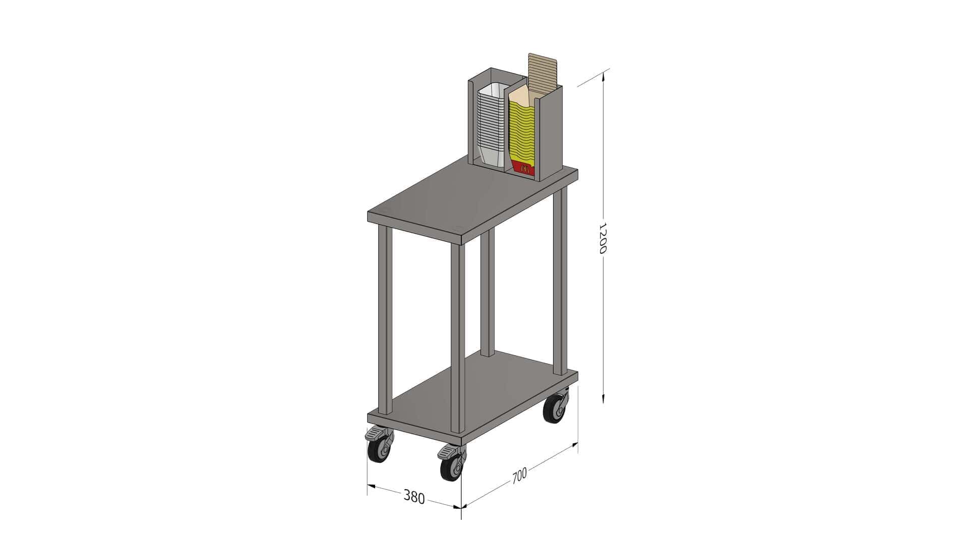 Fourniture et fabrication d’un table flavor fries tout inox sur roulettes comprenant :